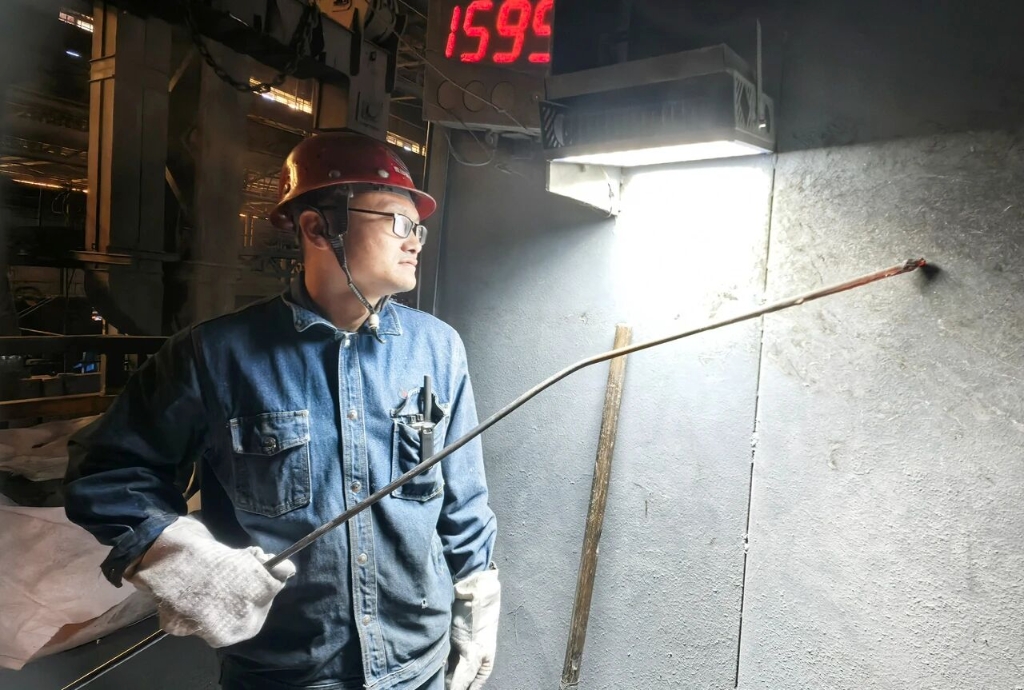 “在成为炉长之前,我在炉前岗位整整干了八年。”柳伟说道。回忆起那段岁月,他的目光仿佛穿透时光,回到了与熊熊炉火为伴的日日夜夜。高温炙烤、钢花飞溅,面对艰苦的环境,他没有退缩,反而锤炼出吃苦耐劳、严谨细致的作风。八年中,他不仅熟练掌握了钢铁冶炼的基础工艺,更对“钢铁是怎样炼成的”有了深刻的理解。