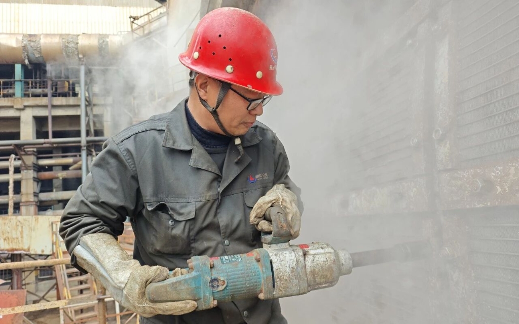 如今,身为维修班技术骨干的王涛,肩负着渣处理全线设备的检修维护重任。每次设备需要维修,他依旧是第一个冲上前的人。尤其是转鼓筛网更换工作,必须在出铁间隙的十几分钟内完成。筛网螺栓由于常年受水渣腐蚀,锈死、卡死是常态,有时工具无法发力,只能靠人手硬拧。即便隔着厚重的隔热手套,螺栓的高温仍能灼烫皮肤,但王涛总是第一个冲上去。