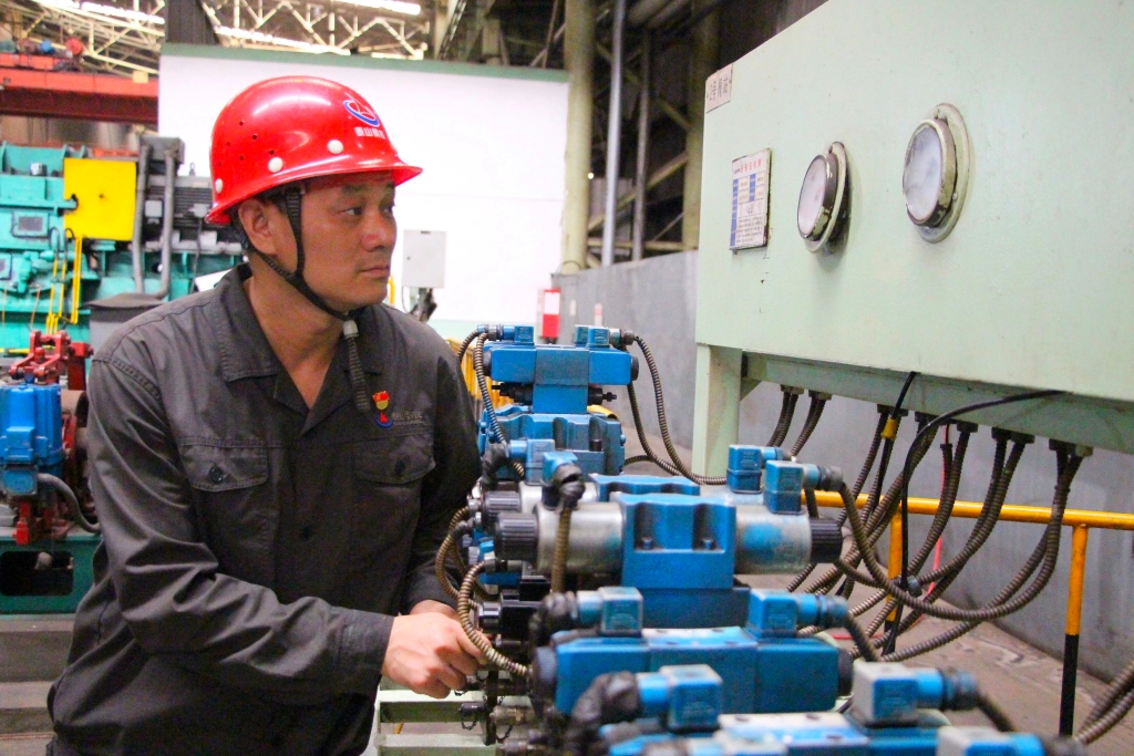 冷轧部1700平整机长毛瑞峰是一名有着23年党龄的退伍老兵。参加工作20年来,他先后从事过轧机开卷工、液压工、轧钢工、纵切机组机长、平整机组机长等工作。无论从事什么工作,他都始终保持着军人本色。对于他而言,每一次岗位的变动都是一种历练。他常说:“我愿意做一颗螺丝钉,哪里有需要就往哪里钉!即便脱下军装,我依然会保持忠诚、奉献、担当的军人本色。”他是这样说的,也是这样做的。2017年7月,纵切机组因生产效率低、职工质量意识淡薄以及现场管理不到位等问题,影响了整条生产线的正常运行。厂部和车间领导看在眼里、急在心头。就在此时,毛瑞峰没有讲条件、没有找借口,毅然接下了这个“烫手山芋”。随后的日子里,他全身心扑在现场,把生产一线当作自己的办公室,虚心向老师傅请教工艺与设备知识,排查隐患、查找不足、明确目标。通过蹲守现场实地测量,他将每卷钢的生产时间精确到秒,依托准确数据制定了严格的操作标准。在此基础上,他还通过开展技术比武和劳动竞赛等,有效激发了职工的操作热情。渐渐地,职工的牢骚抱怨消失了,班产从原来的二十件提高到二十六件,台时产量也提升了12.5%。纵切机组这个昔日“老大难”的工作终于走上了正轨。