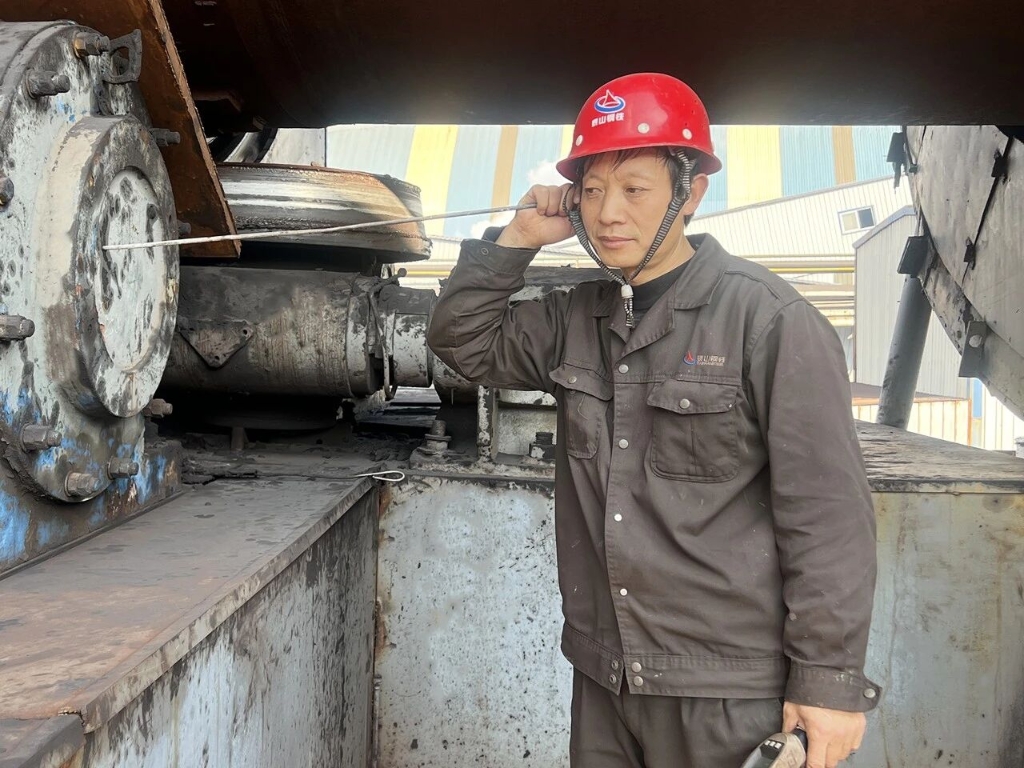 清晨,集团炼铁部原料厂球团车间内,回转窑隆隆运转。回转窑工亓洪光已经戴上安全帽,拿起测温枪、听诊棒,开始了一天的工作。