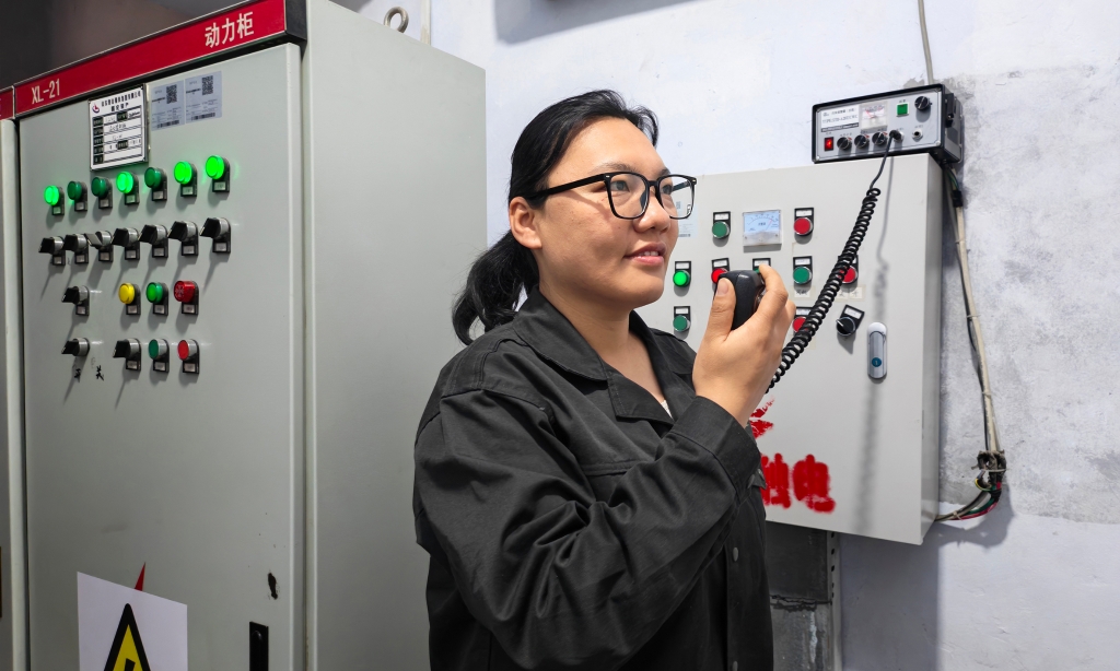 每天,罐车一辆接一辆驶入发货区。戚晓总是第一个迎上去:核对平台信息,引导车辆停稳,操作设备装车,一气呵成。工作间隙,她也不闲着——清理散落的矿粉,落实防尘措施,尽己所能为工友营造相对整洁的工作环境。